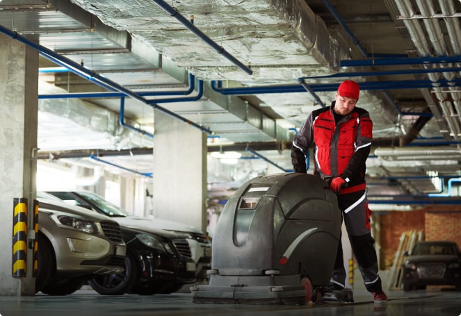 Przeprowadzamy doczyszczanie mechaniczne powierzchni podłogowych profesjonalnymi szorowarkami dla wszelkich obiektów przemysłowych, garaży podziemnych, hal i magazynów.
